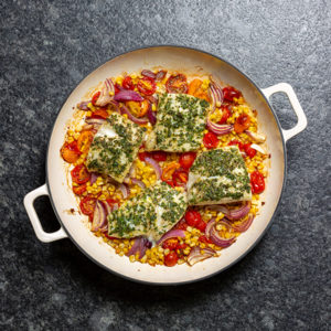 This one-pan cod recipe brings the flavor with delicious veggies and fresh tarragon. You can serve it as is or in a warm corn tortilla.