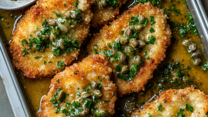 This Pork Schnitzel with Brown Butter-Caper Sauce turns simple pork chops into a golden, crispy masterpiece. Lightly breaded and pan-fried, each bite is tender and crunchy. The rich brown butter sauce, with sautéed shallots, garlic, capers, and a burst of lemon, adds an irresistible tangy finish. Topped with fresh parsley, this dish pairs perfectly with potatoes and makes any meal feel like a special occasion.