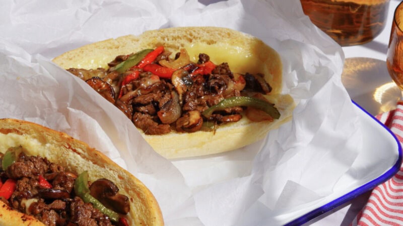 Indulge in the ultimate comfort food with our quick and hearty Steak Bomb Sub, featuring tender ButcherBox Premium Steak Tips and loaded with melted cheese, mushrooms, sautéed peppers, and onions.