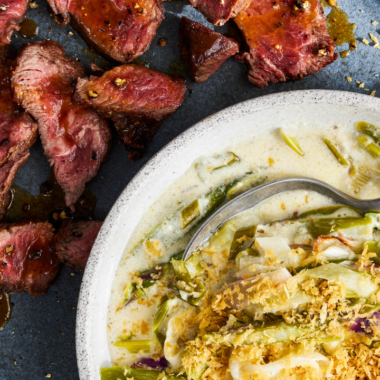 It’s hard not to love the pairing of a beautifully seared, caramelized steak with a rich and creamy gratin.