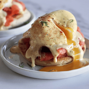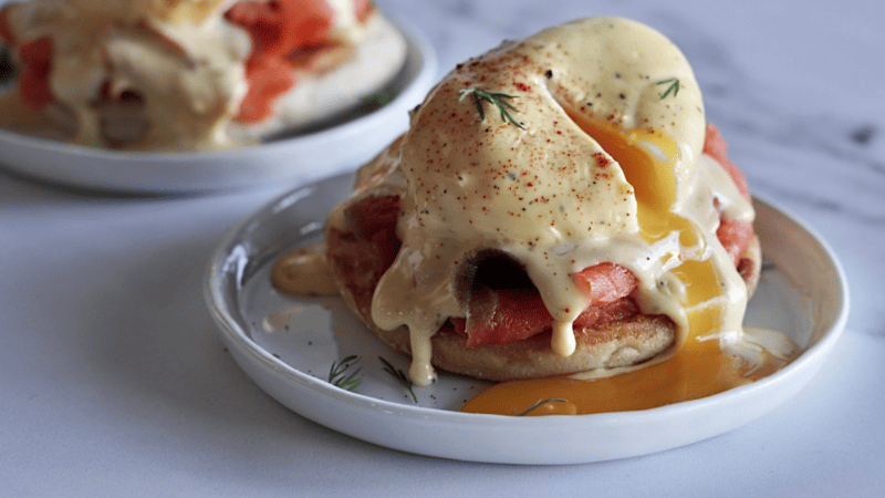 - Drizzle the blender hollandaise sauce generously over the poached egg and smoked salmon.