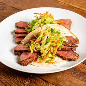 Sweet and Sour NY Strip Tacos with Cabbage Slaw